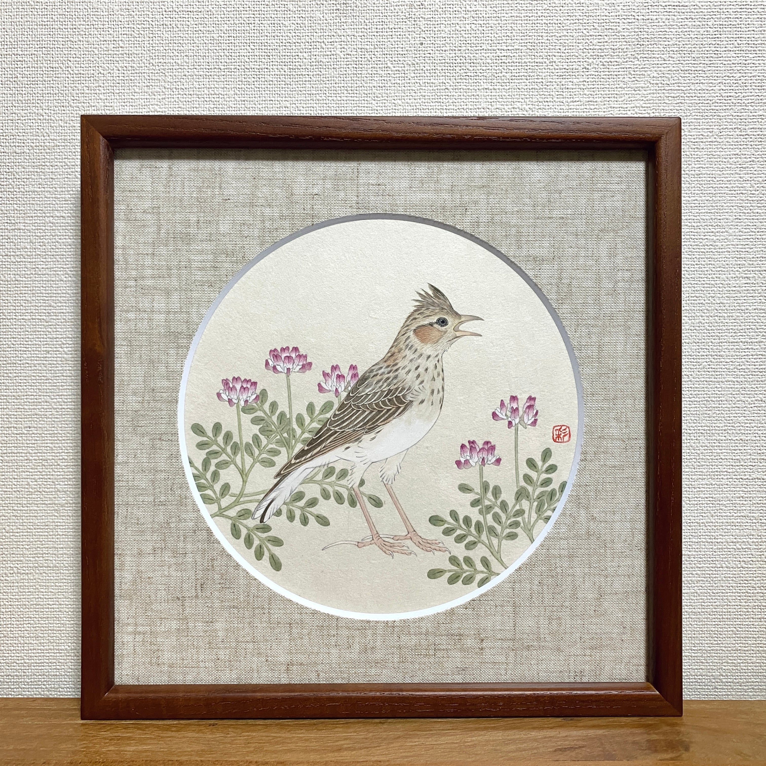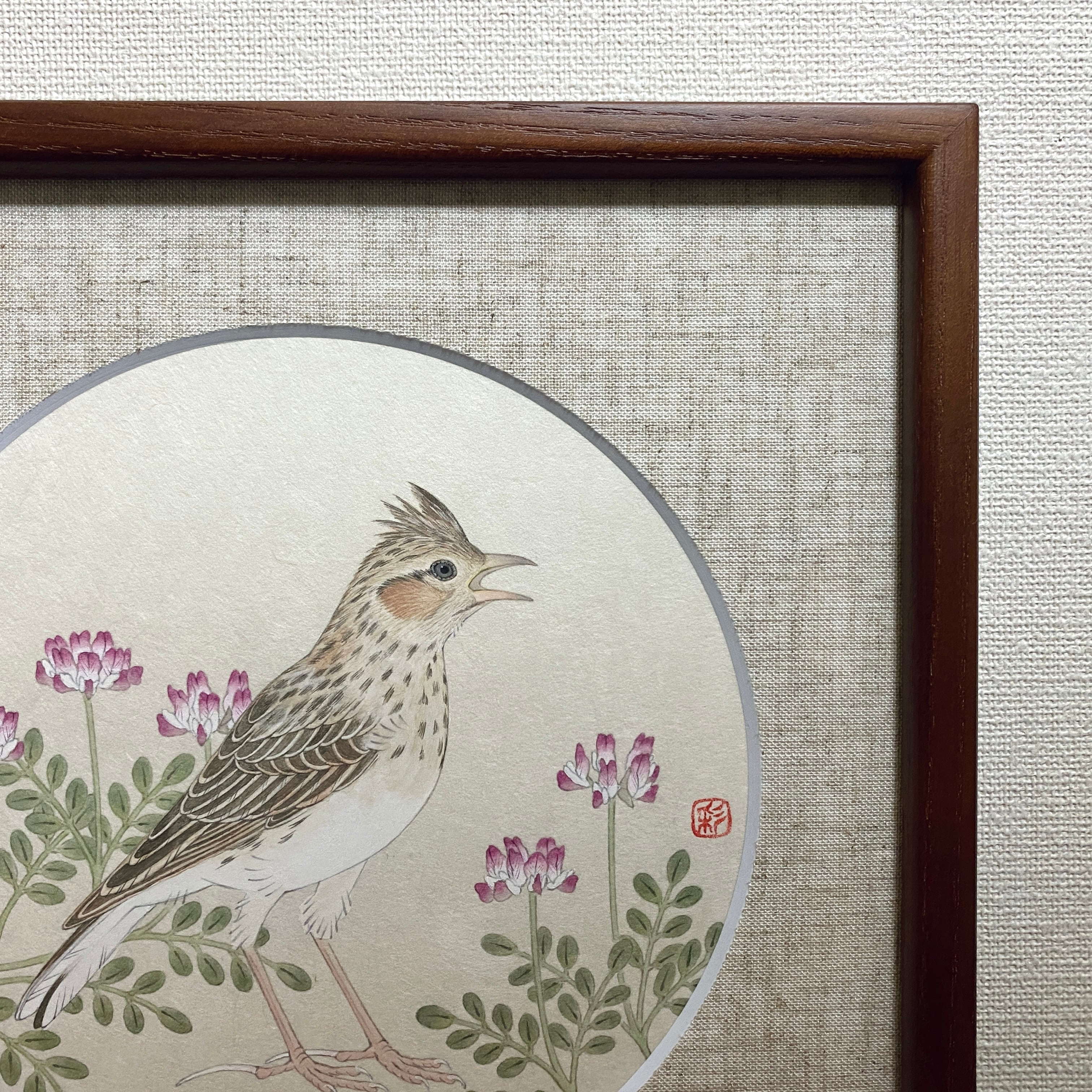 This painting was done on Japanese paper using Japanese painting materials such as ink and mineral pigments.